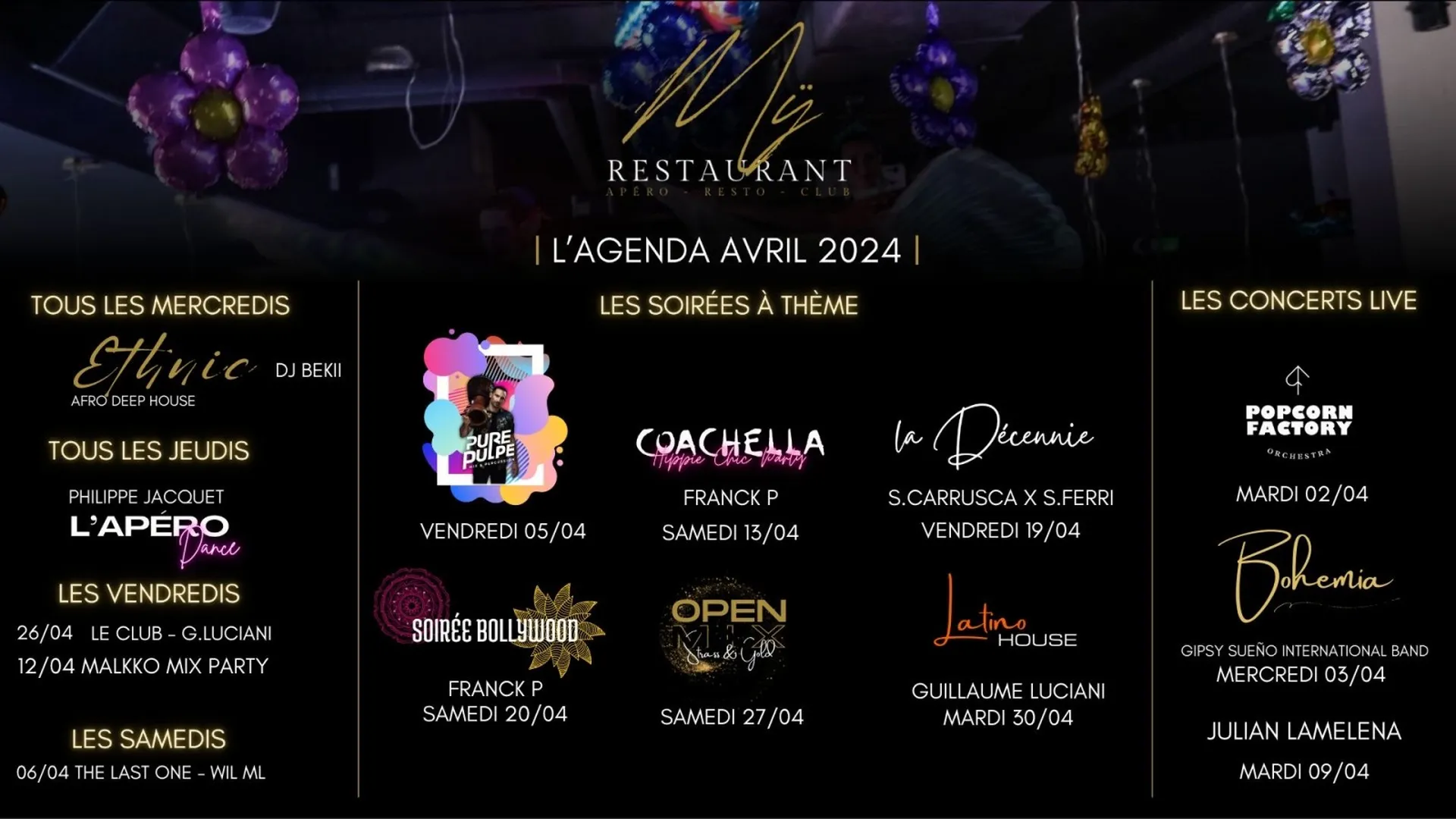 Au programme : concerts live, soirées clubbing, soirées à thème et de belles surprises !